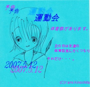 ・・・学校で絵をかいてます、高校一年木下夜実。